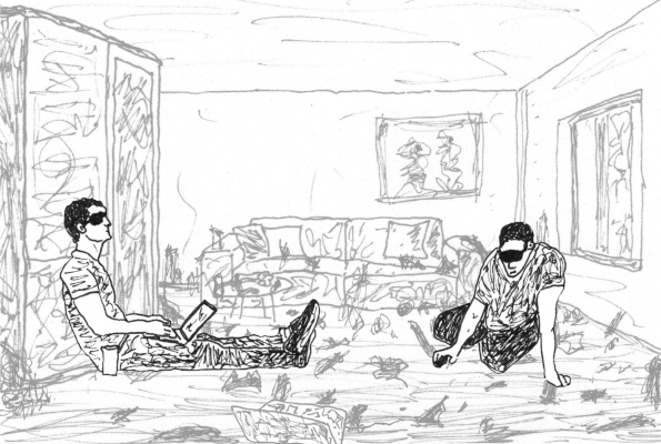 Tag 1 Heinz: Ding-dong! Helmut, gehst du mal zur Tür? Wo ist der Typ? Helmut!! Zu blöd! Also gut, ich ... Aaah! Krach schepper. Mist! Schschsch. Hallo? Ach so, ja, ich komm runter! Klp |