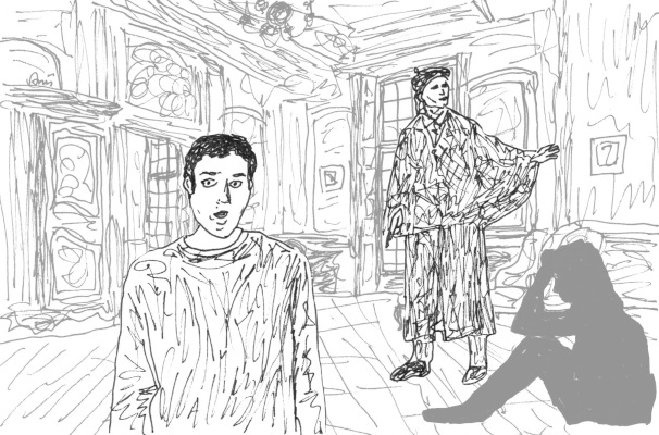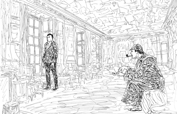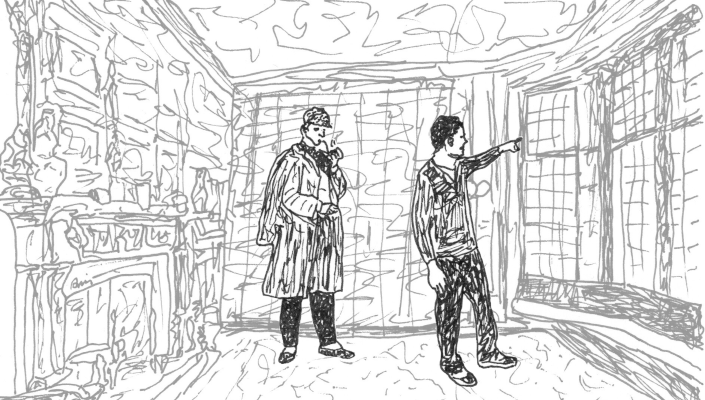 (English) Helmut finds Heinz in his room, where from the window he sees Sir Robert of Baskerville having a discussion with a servant. Heinz tells Helmut about his current activities and it becomes clear that the two of them make a perfect team. |