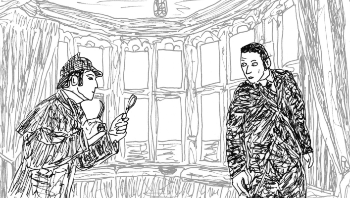 (Italiano) La calma è una delle caratteristiche principali di Sherlock Holmes e Helmut dimostra in questo episodio quanto sia vicino all'originale. Heinz, alias Watson, invece, non sembra essersi ancora abituato al suo ruolo. |