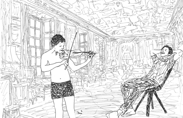 Day 5 Heinz: If you walk more on the edge, the floorboards won't creak so much. |