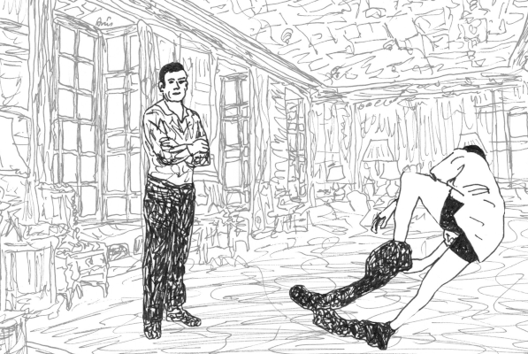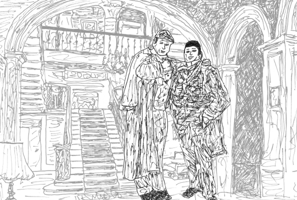 (Italiano) Helmut trova Heinz nella sua stanza, dove vede dalla finestra che Sir Robert di Baskerville discute con un servitore. Heinz racconta a Helmut le sue attività attuali e si scopre che i due formano una squadra perfetta. |