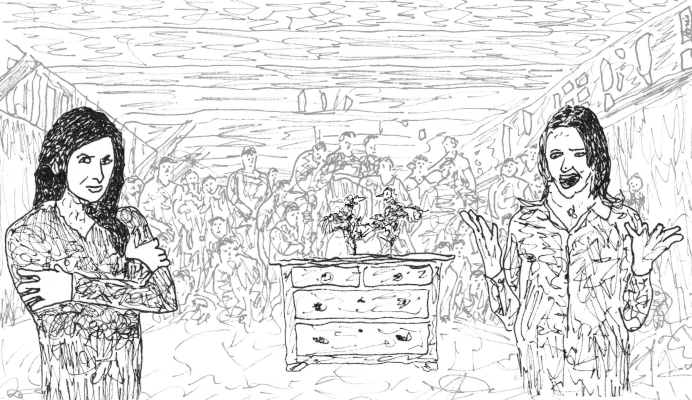 Day 16 Helmut: Manon!! The bread has arrived! What the...? Augustin and Maxime, what's that you're carrying around with you? A bathtub? |