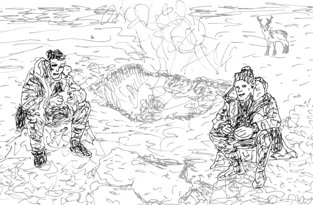 Day 64 Heinz: What could be nicer than sitting comfortably by the heater again after a successful adventure in the freezing cold! Ah, Helmut, there you are. Have a seat! |