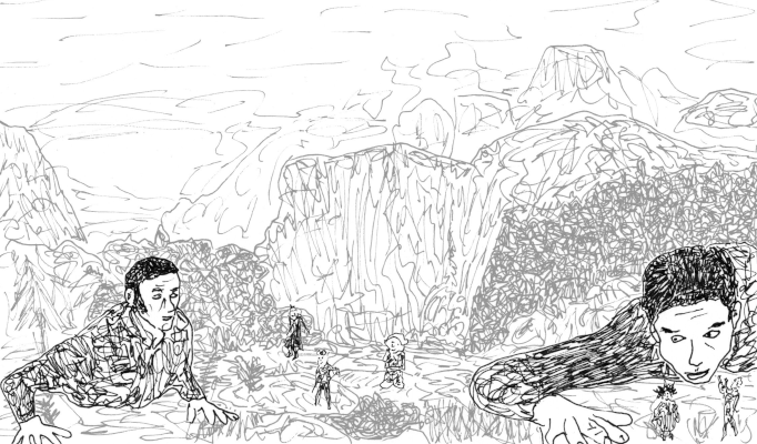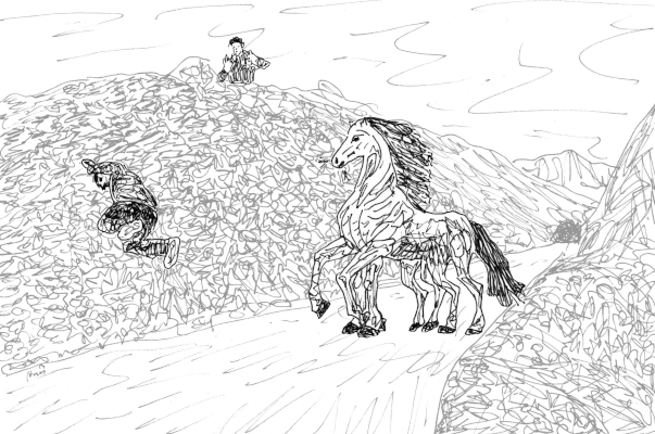 Tag 56 Heinz: Von da oben können wir uns ein Bild machen, ohne gesehen zu werden, sagt Ludwig. Von hier aus müssen wir alleine weitergehen. Fiep fiep |