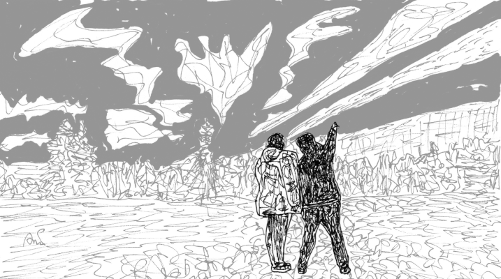 (Italiano) Da Dimmuborgir, i Ragazzi tornano a Reykjavik la mattina dopo, ascoltando i primi CD di Björk. Quando la sera si trovano di fronte a uno spettacolo naturale, Helmut spiega all'amico perché pensa che il verde sia il colore della purificazione. |
