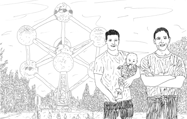 (English) The Boys and Maria enjoy themselves on the viewing platform of the Atomium in Brussels, a five-minute walk from Till's apartment. When he reunites with them there after his meeting, he presents a proposal that Helmut is enthusiastic about. Heinz less so. |