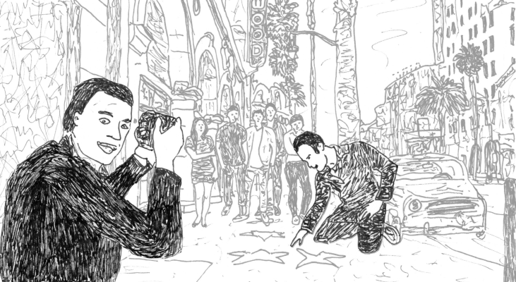 Walk of Fame Tag 17 Helmut: Hab ich nicht gesagt, dass ich einen Parkplatz mitten auf dem Hollywood Walk of Fame finde? Und voilà Papa! Peng knatter peng rödel rödel tsch |