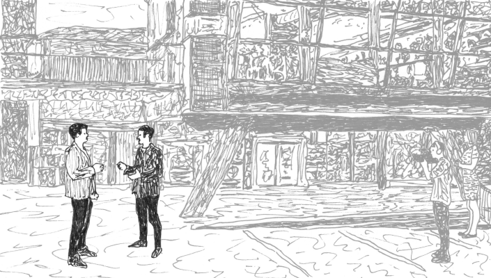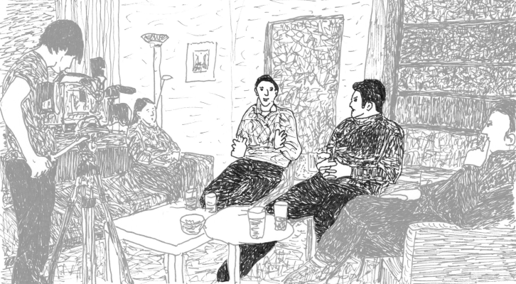 (Italiano) Mentre si godono una birra sui gradini davanti alla casa di Hedu, Heinz e Helmut dimostrano la loro amicizia discutendo i pro e i contro di un viaggio a Hollywood, in modo trasparente, oggettivo e con la necessaria sensibilità. |