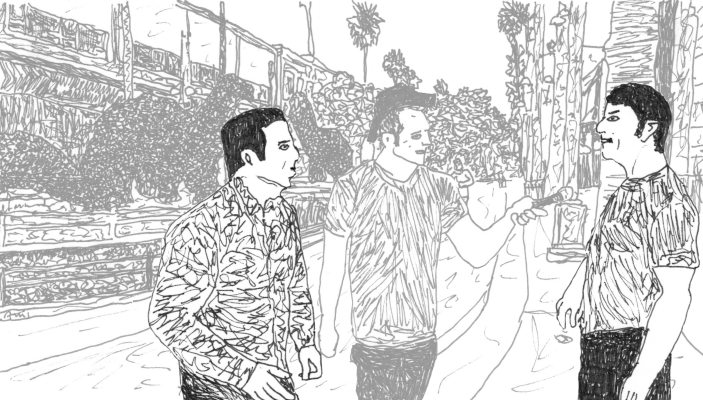 (Italiano) Accanto a Heinz in macchina non c'è più Helmut, ma Tamet, che propone di finire il viaggio fino a Santa Monica. Si ricorda dei vecchi tempi ed è scioccato da quello che vede fuori dal finestrino. |