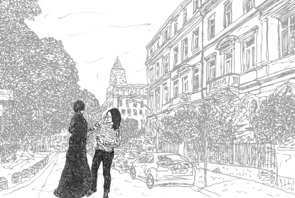 Jour 31 Fanni : Une place de parking juste devant la maison. Et en plus, dans le West End de Francfort. Si c'est pas un bon présage ! Jenny vient de m'envoyer un message, elle est à l'intérieur avec les autres, ils nous attendent. |