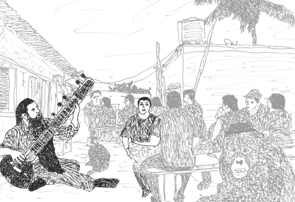 (English) After informing the people at the animal camp about Chinmay’s report, Helmut gets himself into an embarrassing situation and picks up the sitar that is handed to him. Heinz makes fun of his friend, but the laughter soon catches in his throat. |