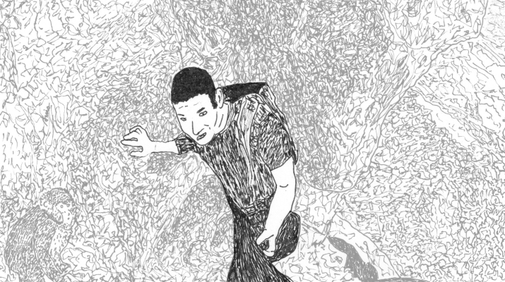 (English) Helmut meditates for a long time. A very long time. When he finally gets up, he’s the only one left from the group. Heinz visits him from time to time and admires his endurance. However, Helmut considers his theory about what happened at the fire to be absurd. |
