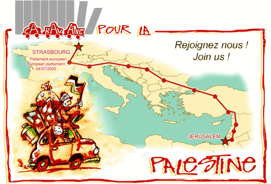 Einen „durchschlagenden Erfolg“ nennt Günter Schenk, Mitglied des „Collectif Judeo-arab et citoyen pour la Paix, Strasbourg“, die Karawane für Palästina, die mit 100 Aktivisten am 5. Juli mit Autos und Bussen in Strasbourg aufgebrochen und über die Schweiz, Italien und mehrere Balkanstaaten in die Türkei gefahren war. Von dort ging es über Syrien nach Jordanien, wie die Junge Welt am 22.07.2005 meldete. Ausführliche Informationen sind gesammelt auf der Seite von Erhard Arendt unter http://erhard-arendt.de/deutsch/palestina/texte/caravane_frieden_recht.htm. Hier folgt Günter Schenks Bericht vom 03.08.2005, der Resonanz unter Networkern erfahren hat. (Text erhalten und durchgesehen am 03.08.2005, Anis) |