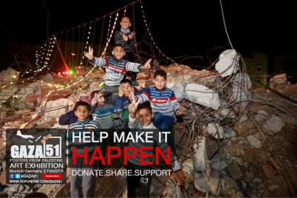 I invite all friends and solidarity people in Germany to come to my first exhibition in Europe and to take part in conveying and spreading the message of the people from the Gaza Strip, expressed in the posters that are shown in the exhibition.