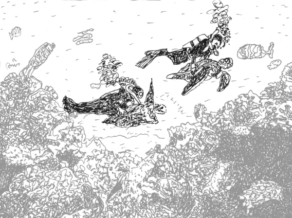 (English) The Boys spend the last part of their journey under water. They can still win the bet, which makes them optimistic, even if Helmut would have liked a panoramic window like in the Nautilus and Heinz would be happy if he could free himself from his trap. |