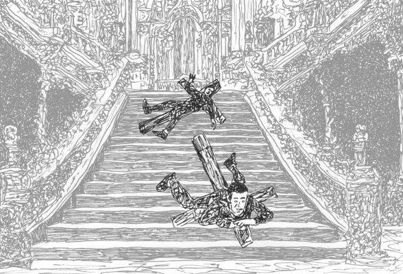 (English) When they wake up, everything has changed. The castle is different, the surroundings are strange, and Heinz and Helmut are no longer the same either. They use an unusual means of transportation to get back to the red room, where they believe to be safe. |