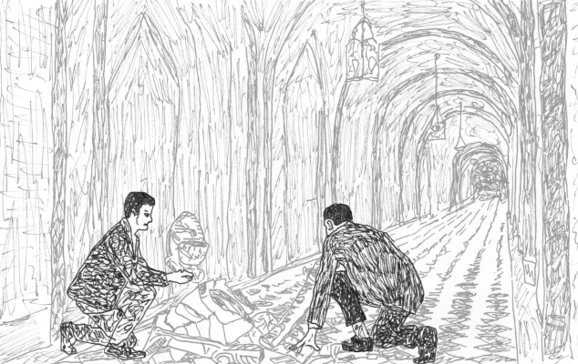 (English) Before the two enter the castle, they take a look at the castle garden, walking along the wall of the building. They soon realize from the flora and fauna that this is no ordinary place, especially Helmut, who keeps a cool head. |