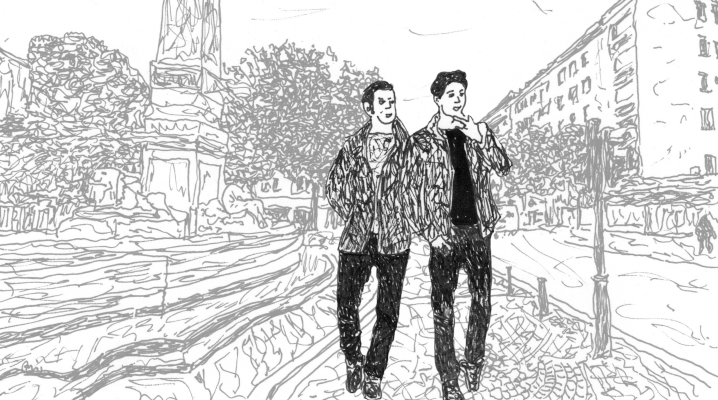 (English) Heinz and Helmut drive into the city to buy a guest gift for Aouda. As they stroll along the pedestrian zone from Neubrunnenplatz, Heinz notices that his friend is behaving strangely. Helmut can explain. |