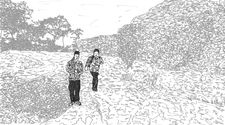 Day 40 Heinz: Smack! Damn mosquitoes! Oh, there's another rock to climb. Is that our…? Uh, Helmut? |