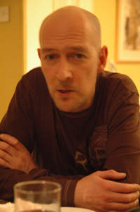 |  | (Dec. 25, 2007) There was this brilliant party at Tom's and Carl's before yesterday where I met Helen and Mary and Polly and Laurence, Colin, Anna, Christine, Jennifer and others. I am not the party guy, you know, but this time I really enjoyed it. Anna looks like the younger sister of Bjork (and liked it very much that I said it.) We danced and sang harmony together when they played "The Girl from Ipanema". To the left is Colin. He wore a Palestinian flag on his jacket, together with an Irish one. He told me about the identity of Liverpool and that he is doing a documentary film on the identity crisis of the city. Colin speaks one of the local accents and told me all about "Scousers", also that the word is related to the dish "labskaus" which is known in Germany.