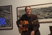 |   (Liverpool, Dec. 22, 2007) Before yesterday I arrived here with Charles, my Liverpool friend who lives in Germany only 10 minutes away from my flat. I am staying with him and his sister Felicity who invited me to exhibit in the Domino Gallery (see flyer). Of course I also brought my guitar along. It is a lovely city and my first visit here. As I managed to download the necessary software I can work on this blog on the spot.The first morning – or noon, rather – we had breakfast in the "Soul Cafe" downtown and went shopping afterwards to fill the fridge. I met Dalip in Matta's supermarket. In the evening, Felicity took me to the View Two Gallery where there was an exhibition and a Christmasy evening with song and quizzes. I met Ken, the friendly owner of the place who invited me to a whiskey. Gemma was the host, she made the Christmas quiz. The highlight of the evening was Neil Campbell, he is a guitarist and plays great! Visit his website: www.neilcampbellcollective.com. Afterwards, Felicity, Gemma, Robin and I went on to a bar called "3345" and I wore a red Christmas hat. At 1:30 a.m. Gemma and I shared a taxi back home. I managed to find my bed and fell asleep ...