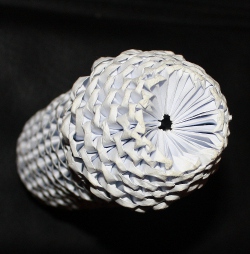 (English:) (December 23, 2014) When I discovered origami triangles I was intrigued. Little units that could be put together Lego style. Once I had a thousand City World posters too many, as they were too light in print, and within two years I turned them into origami triangles which I used building mats, columns and eggs. At the end of 2014 I produced this video (left) and wrote some music for it ("The Strolling Worker"). The video explains how it works and shows the best pictures. |
